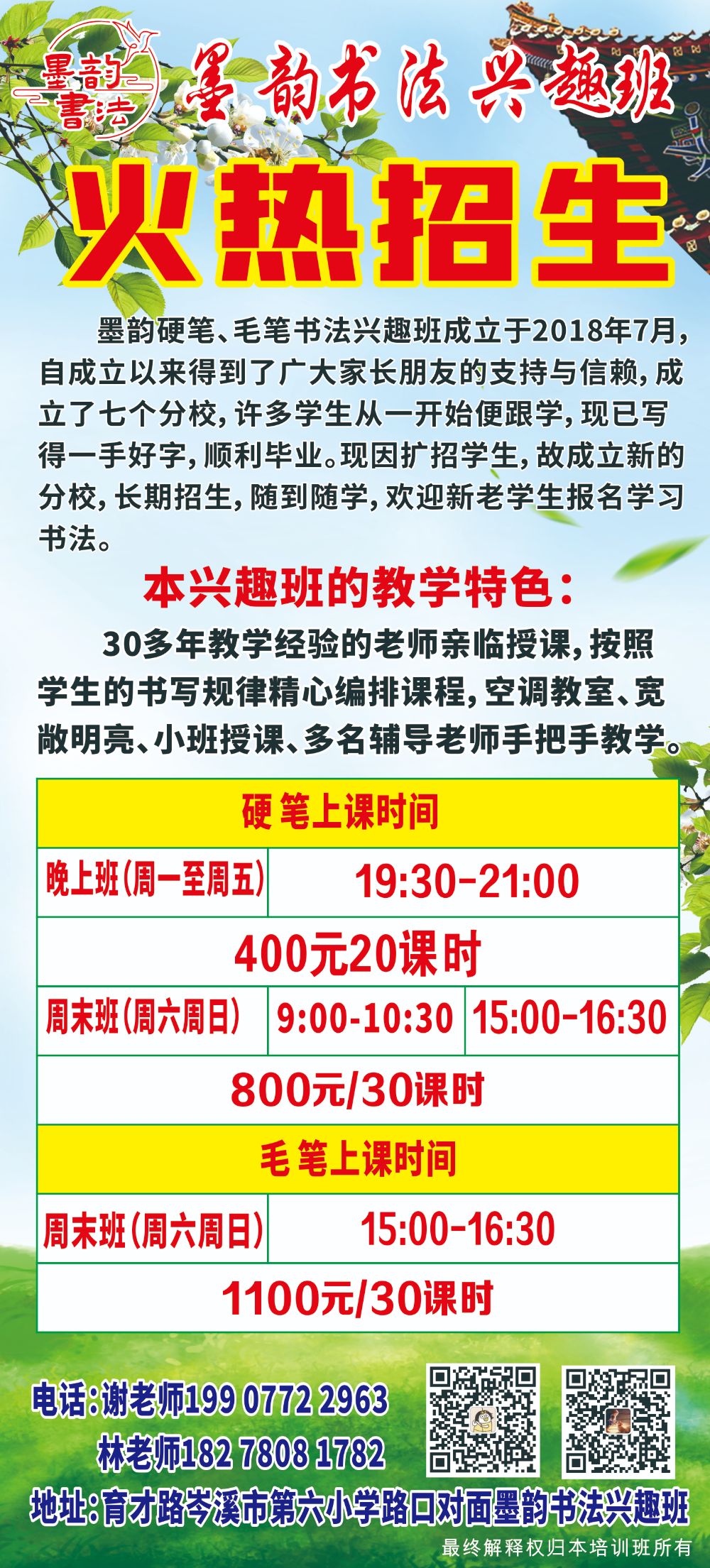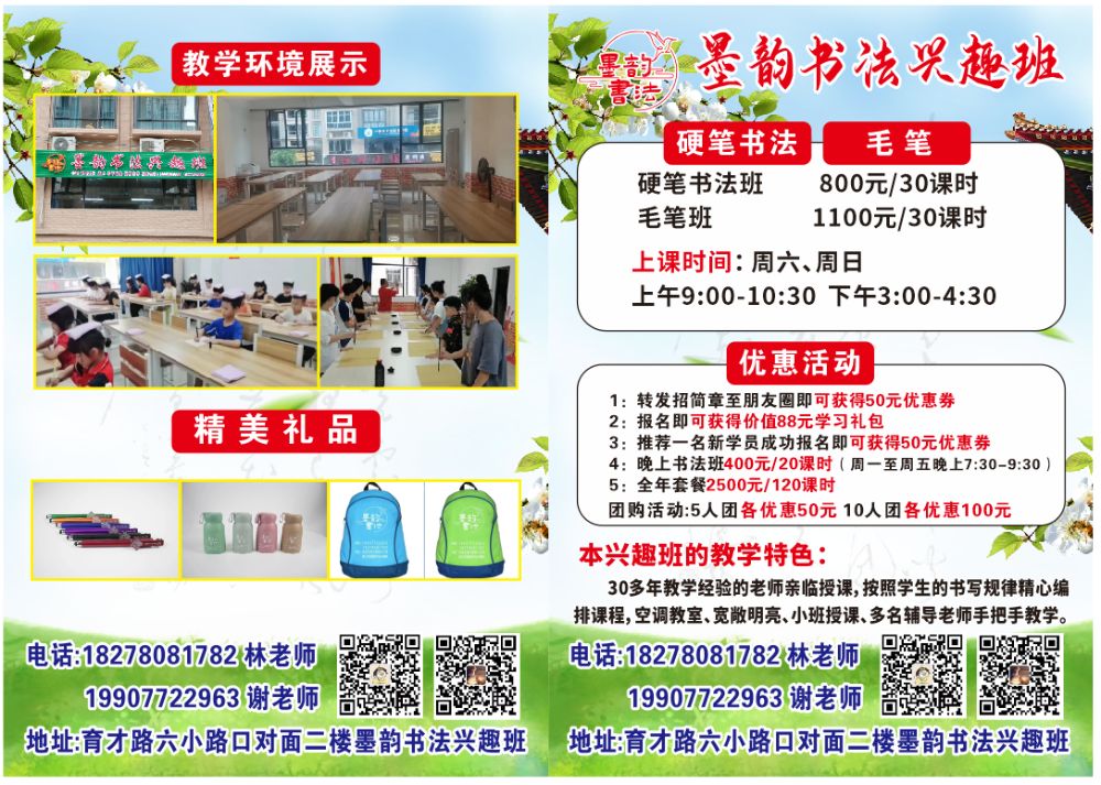 墨韵书法兴趣班火热招生,9月12号正式开课,当天免费体验,满意再报名。